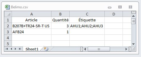 Téléversement d’un fichier CSV pour créer un panier sauvegardé.